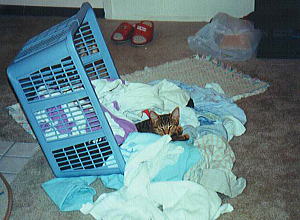 乾燥機から出したばかりの 洗濯物のポカポカさが たまらない。。。 (サンディエゴにて・1992年秋) |