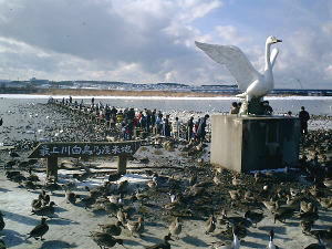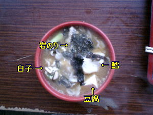 以前はお目当ての白子が入ってないって事も あっていろいろ不評の時もあったが、最近は どのお店でもこれくらいの内容になってきた。 ドンブリ一杯で500円。 もちろんネギも入ってますよぉ〜 |