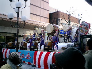 和太鼓演奏も迫力があって良かったよ〜 演奏者は女性は半袖、男性は袖なしの衣装 (^-^) 見てる方は「うぅ〜〜さぶ (>_<)」って感じでした。 |