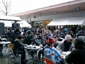 11時過ぎでこの人だかり・・・ 買ったドンブリを持って歩くのがまた一苦労 (>_<) とにかく吹雪にならなくて良かった良かった (^^ゞ |