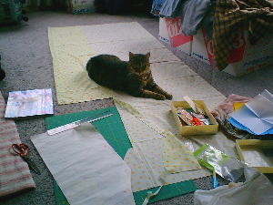 あまりにも乱雑ではありますが・・・(^_^;) 急に思いたち、ブラウス作りを始めました(^^ゞ 案の定、花子の妨害にあってます(>_<) 女王様・・・どうかどいて下さいませんか? |