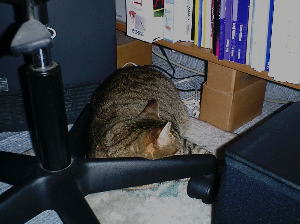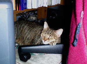 ココは夫の机の下・・・本当に猫って狭いところが好きなのねぇ〜