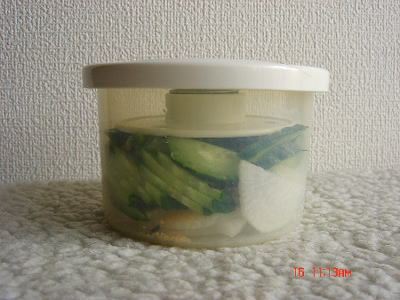 100均で買った「バネ付き漬物カップ?」にて浅漬けを作る事。