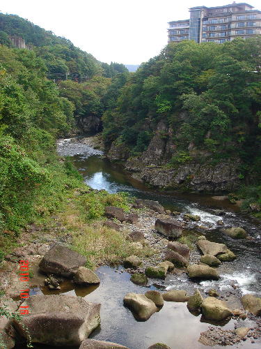 温泉街の入口にある渓谷、あまりにも近くにあるのでビックリ(^^ゞ