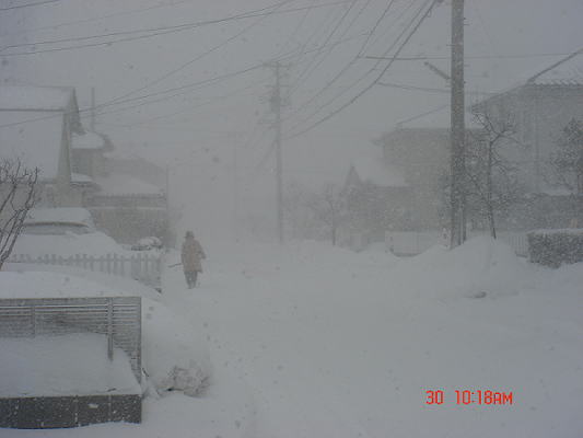 これは昨日の午前中の除雪中に撮った一枚。 視界は50m程でしょうか・・・
