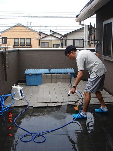 夫曰く、ベランダタイルは高圧洗浄機かなぁ〜って言っていました。