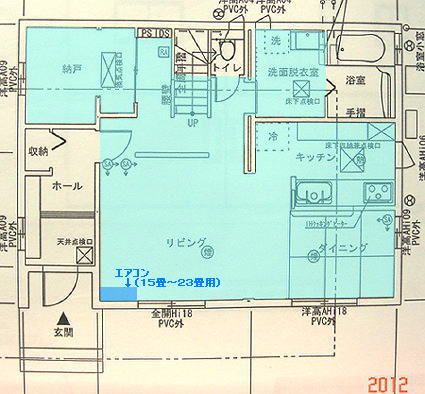 ![]() ↑ 2階はグリーン部分は夜10時から翌朝6時位まで28℃で冷房 イエロー部分は平均、毎日5時間程27℃で冷房 冷房を使っていないところは32〜35℃(>_<) 暑いです |