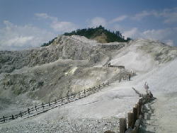 ←今回は新庄を北上して秋田県へ(^^ゞ お昼は道の駅雄勝でとり、さっそく 川原毛地獄山に・・・ 硫黄のガスがあちらこちらから噴き出して いて、まさしく地獄山って感じ(^^ゞ |