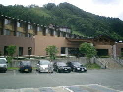 ←ホテルの外観(^^)/ おや?目をこらすと夫が見える(^^ゞ |