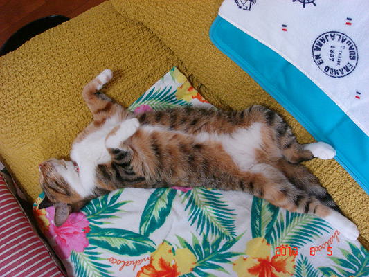 ヘソ天で寝ていると腹の模様が分かる