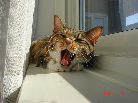 冬間近、貴重な日光浴の梅子